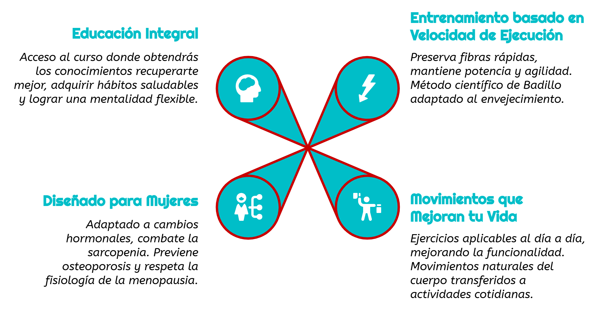 Mi enfoque combina entrenamiento basado en velocidad de ejecución (VBT) con adaptaciones específicas para cada situación. No prometo milagros, prometo trabajo serio, adaptación constante y resultados sostenibles que te preparen para esta etapa de la vida con la fuerza y confianza que mereces.
